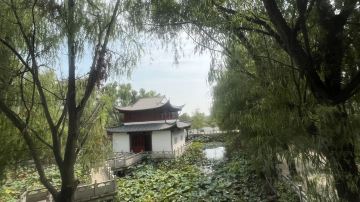 顶为重檐歇山顶,亭之前后,有池桥各一与池也相连,三墩四孔,墩以花岗石彻垒,墩间并以长宽1.23米,高2.78米,后桥为"之"字形曲桥,衔接桥长10.55米,宽1.23米,高2.78米;二桥下方,各有莲池两方于侧,盛夏之季,漫步莲池,微风悠悠,清香朴鼻,似步入清凉之世界,心旷神怡。