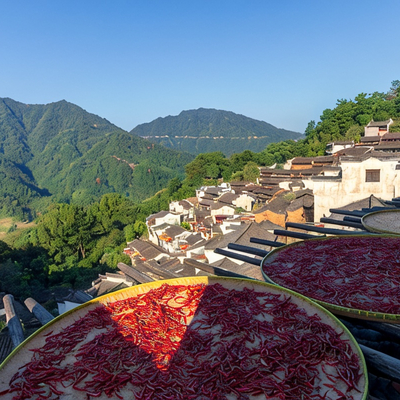 立秋一到,篁岭古村就成了一个天地晒场。来晒秋人家赏红枫,欣赏屋顶晒秋,枫林尽染,体验民风民俗,手摇风车、套南瓜等,感受晒秋人家的乡愁韵味。