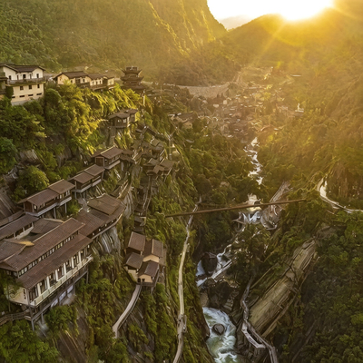 西海岸景区是景区观景开阔的平台,让人称奇的高空栈道也正是位于此。步行在高空栈道上,感受悬崖绝壁之上闲庭信步的乐趣,欣赏连绵群峰、幽深峡谷的壮观之景,还可远看晚霞、云海的绚丽秀美。