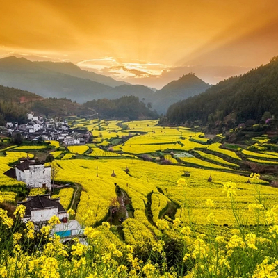 阳春三月,婺源篁岭景区数万亩层层叠叠的梯田上油菜花盛开,粉红的桃花、雪白的梨花点缀其中,是一副优美的水墨油画,在这里,你可以与大自然融为一体,与花海亲密接触。