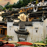 挂在山崖上的篁岭古村,地无三尺平,数百年来,村民早已习惯用平和的心态与崎岖的地形“交流”,绘就出了一处“晒秋人家”风情画。