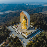 世界较高的阿弥陀佛铜像——48米高的东林大佛,这座金灿灿的大佛屹立在高山之巅,48米高的东林大佛整体造型吸收了龙门石窟等盛唐佛像优点,代表了当代较高水平的宗教艺术精品,中国少有的露天阿弥陀佛铜像。
