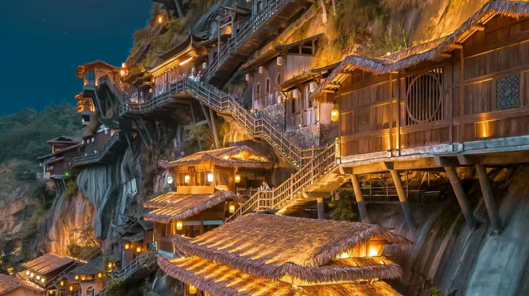 西海岸景区是景区观景开阔的平台,让人称奇的高空栈道也正是位于此。步行在高空栈道上,感受悬崖绝壁之上闲庭信步的乐趣,欣赏连绵群峰、幽深峡谷的壮观之景,还可远看晚霞、云海的绚丽秀美。
