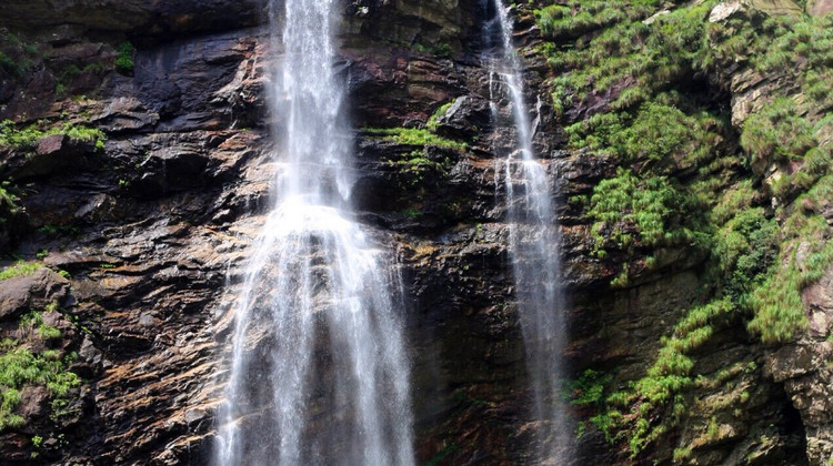 瀑布较闻名的应数三叠泉,旧有“未到三叠泉,不算庐山客”之说。三叠泉瀑布之水,自大月山流出,缓慢流淌一段后,再过五老峰背,经过山川石阶,折成三叠,故得名三叠泉瀑布。